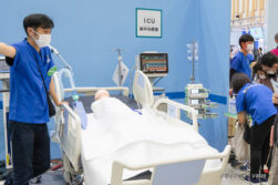 現役の医療チームが会場に!シミュレータを使って心臓カテーテル、腹腔鏡手術を実演します。